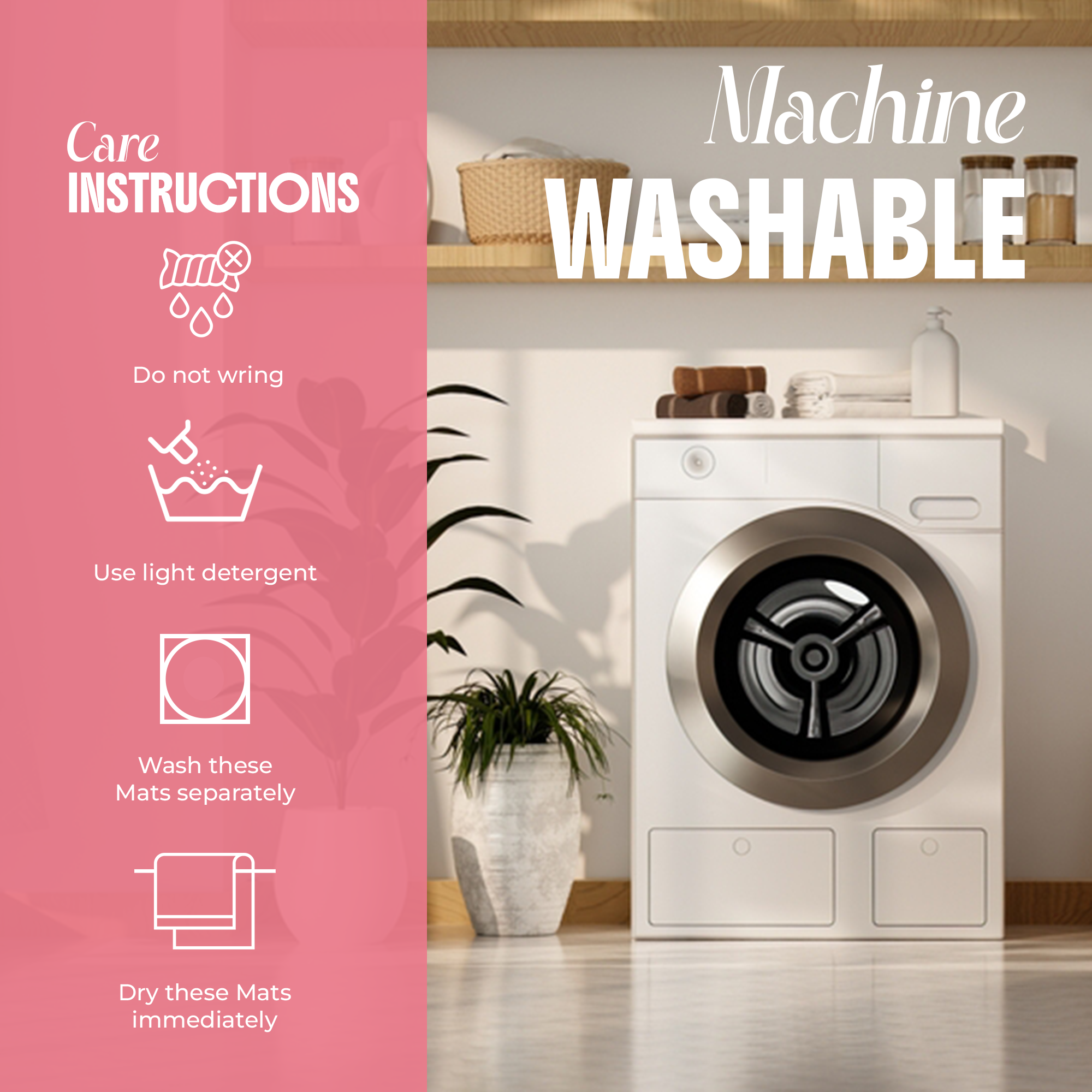 - Feature: These bath mats are fully reversible and have non-rubber backing which makes them quite easy to take care of like washing them along with other mat without causing any sort of harm or damage. These bath mats dry quite fast as well so you can simply wash them with ease without thinking twice