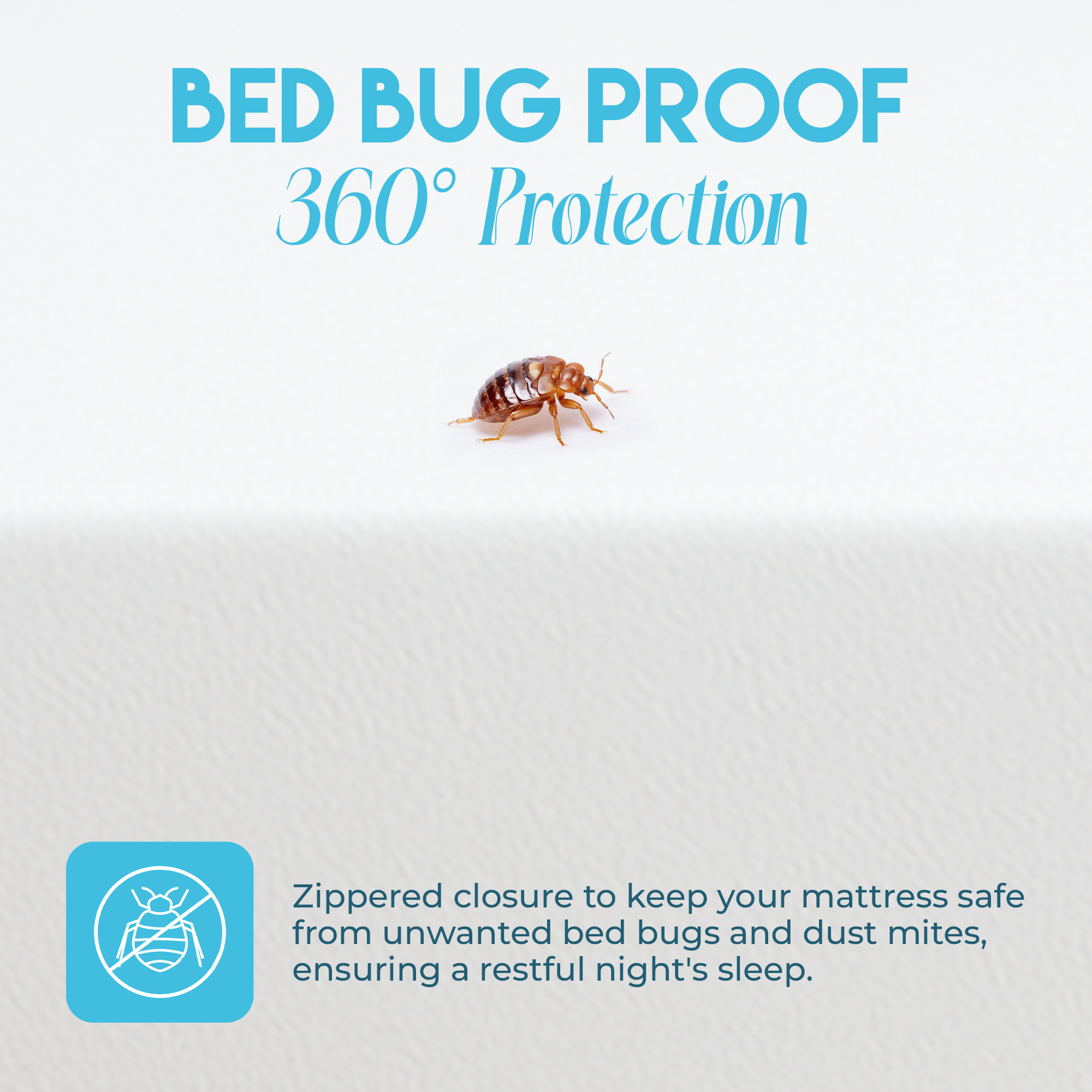 - Features: 100% Waterproof, Stretchable Knitted Polyester, Zippered Cover, Bed Bug Proof, Dust Mite Proof, TPU Backing on all Sides, 360 Degree Protection, and Machine Washable.