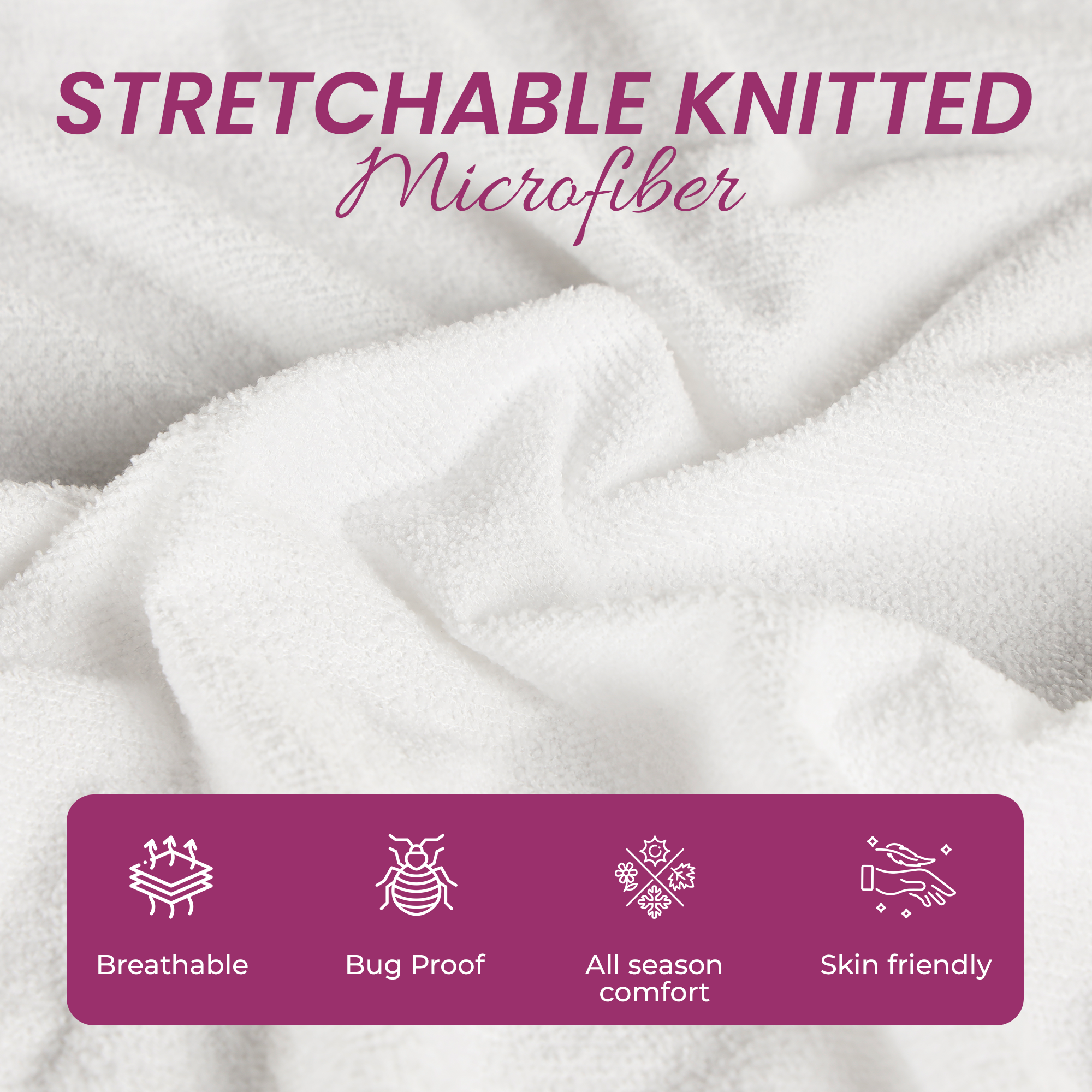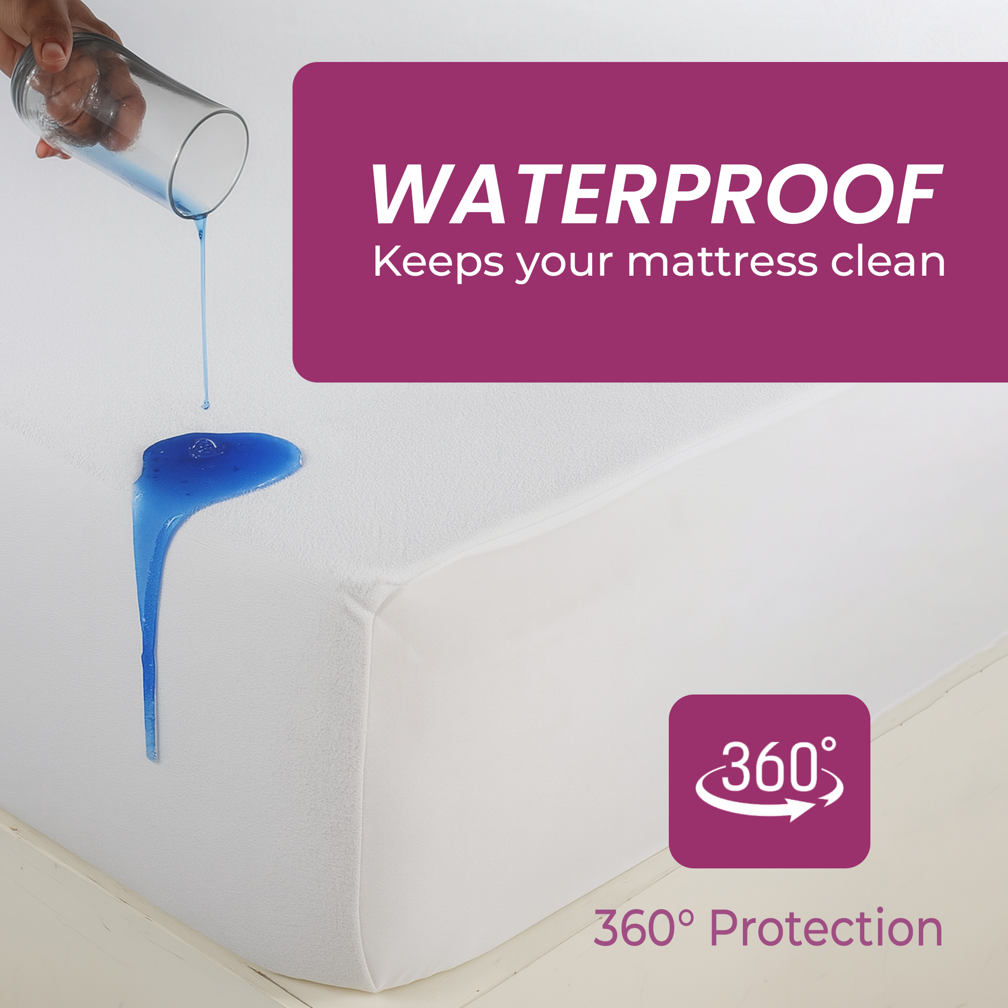 - Features: 100% Waterproof, Stretchable Knitted Polyester, Zippered Cover, Bed Bug Proof, Dust Mite Proof, TPU Backing on all Sides, 360 Degree Protection, and Machine Washable.